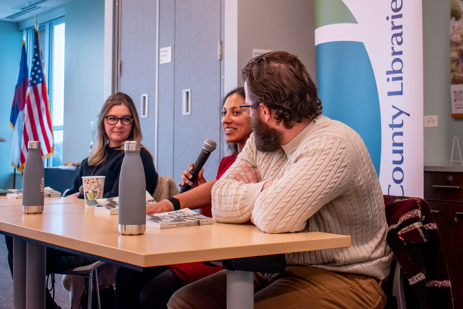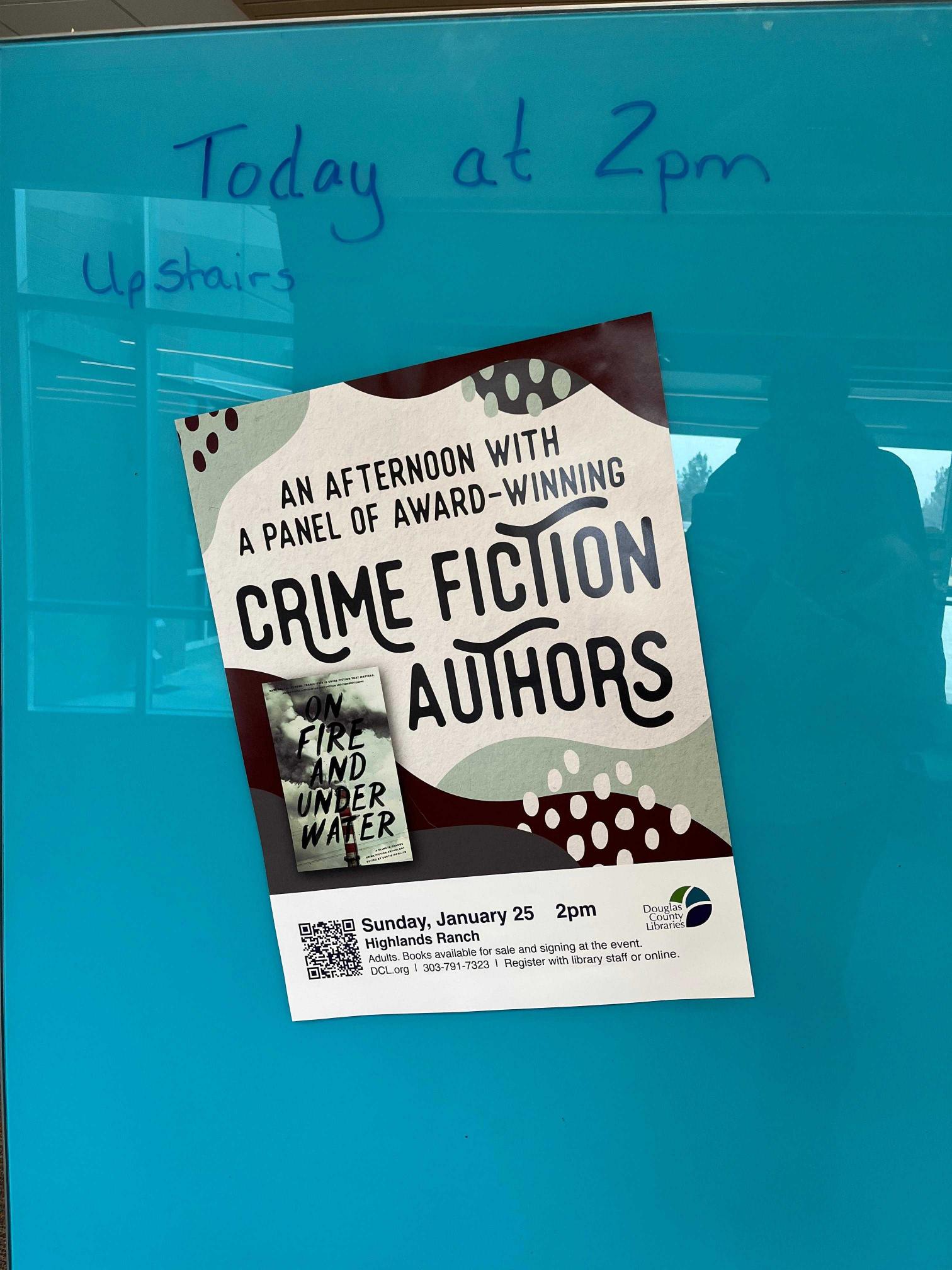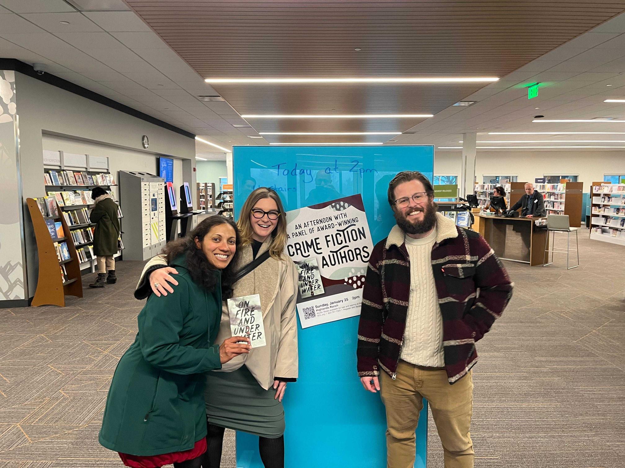 Puja Guha joined local authors C.E. McKenna and Raymond J. Brash on January 25 for a roundtable at the Highlands Ranch Library focused on On Fire and Under Water: A Climate Change Crime Fiction Anthology (ed. Curtis Ippolito). Rather than a formal reading, the panel emphasized conversation — how craft, place, and research shape short fiction that asks urgent questions about climate, culpability, and consequence. Puja spoke about the research behind her contribution, the small narrative choices that lift a short story, and how genre can be a lens for moral complexity. The program blended brief readings, a moderated discussion among the authors, and an audience Q&A, and concluded with a signing and meet-and-greet.